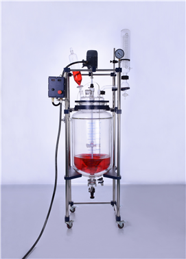 本玻璃反应器由GG17高硼硅玻璃与304不锈钢材料制成,包括釜盖、釜体(双层玻璃反应器)、冷凝器、蒸馏瓶、恒压滴液漏斗、搅拌器、304不锈钢井字架、低温循环油浴锅等部件组成。具有透明、耐腐蚀、耐高温的特性,便于操作者观察釜内介质的反应变化各被搅拌的情况,非常直观,安全可靠。搅拌方式为机械搅拌机械密封,搅拌力强,无泄漏。