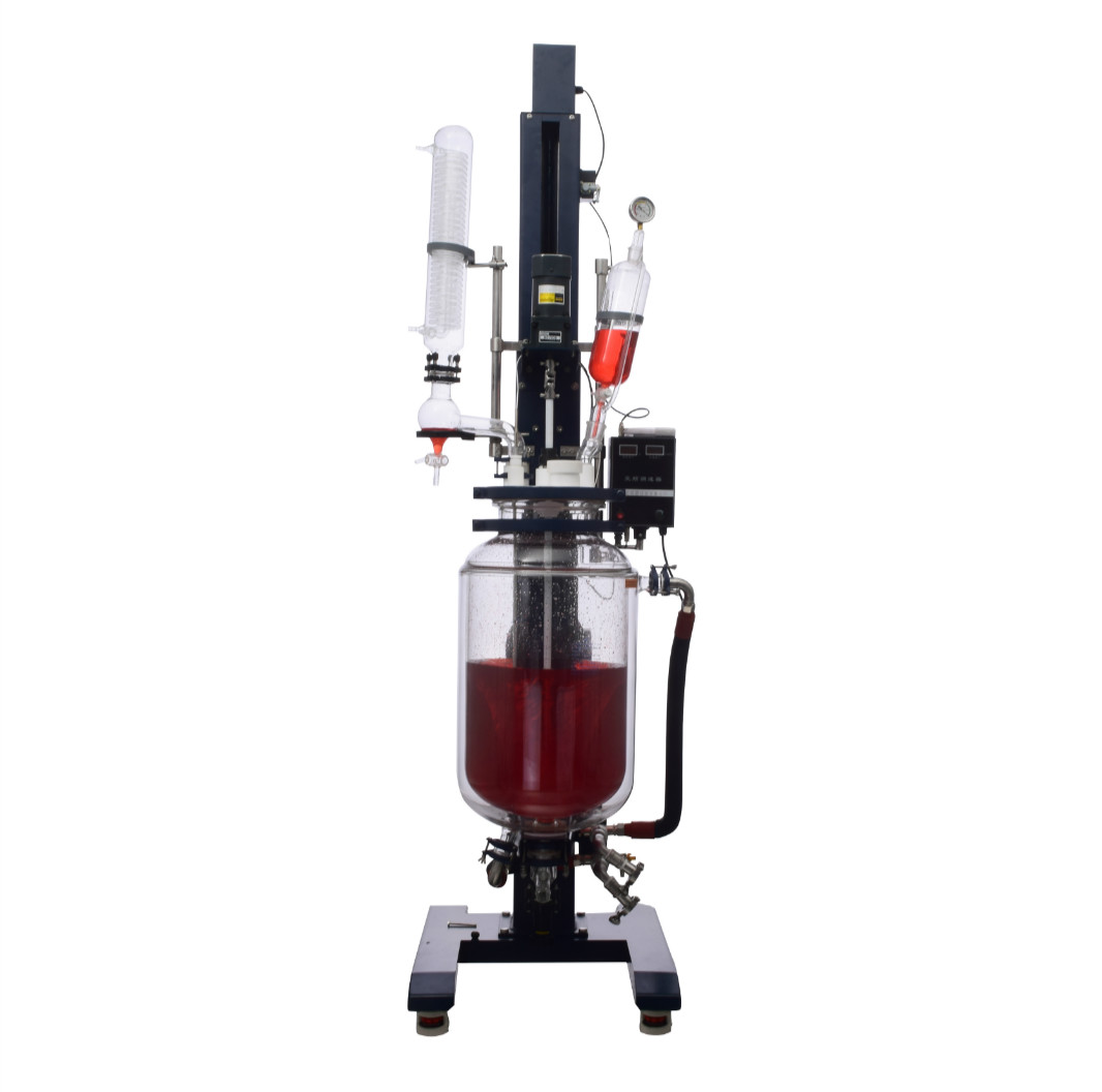 新型升降旋转双层玻璃反应釜是常用的生化仪器,广泛地被现代精细化工、生物制药、科研实验等行业所选用,可在恒速、恒力、恒温的条件下做浓缩、蒸馏、回流、分离、提纯反应,是教学、实验、中试、生产的理想仪器设备。