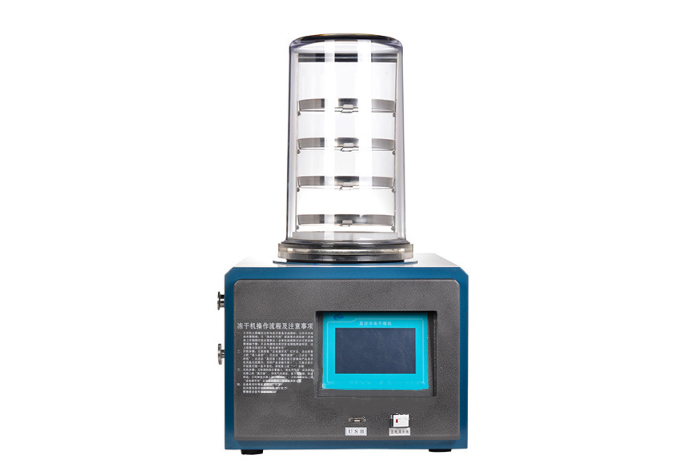 产品在干燥过程能保持物料的原有成份和活性成份及物料形体不受损。开机后将物料投入物料箱内进行冷冻。物料的冷冻过程,一方面是真空系统进行抽真空把一部分水份带走。另一方面是物料受冻时把某些分子中所含水份排到物料的表面冻结,达到冷冻要求后,由加热系统对物料加热干燥,通过抽真空把物料中所含的水份带到冷冻捕集箱结冻,达到物料冷冻干燥要求。