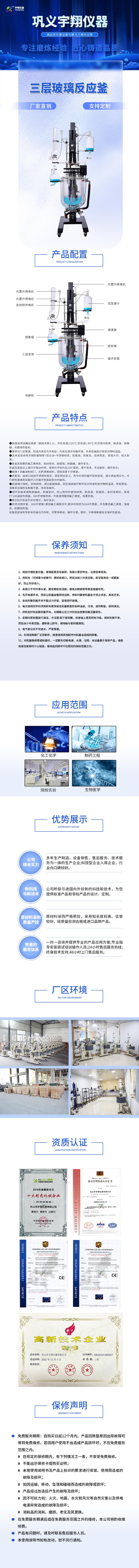 新型升降旋转三层玻璃反应釜 SJS312-(1-100L)